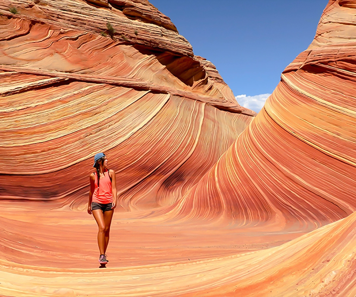 A natural maze carved by time. Walk between towering rock walls painted in shades of red, yellow, orange, and brown — a surreal landscape shaped by thousands of years of erosion.